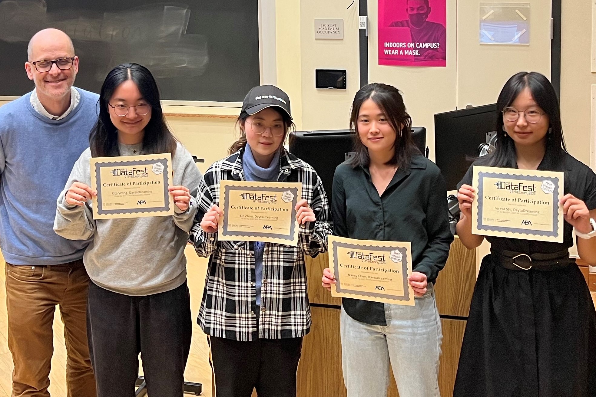 "Datafest was a great opportunity to experience what real world data analysis entails. By getting the chance to work on a large company dataset, Datafest participants can understand the challenges and rewards of discovering insights from big data. Working in teams in Datafest also promoted a great sense of meaning and collaboration in our analysis work. Datafest was a rewarding experience that provides lots of help along the way so I encourage anyone interested in data analysis to come and participate."