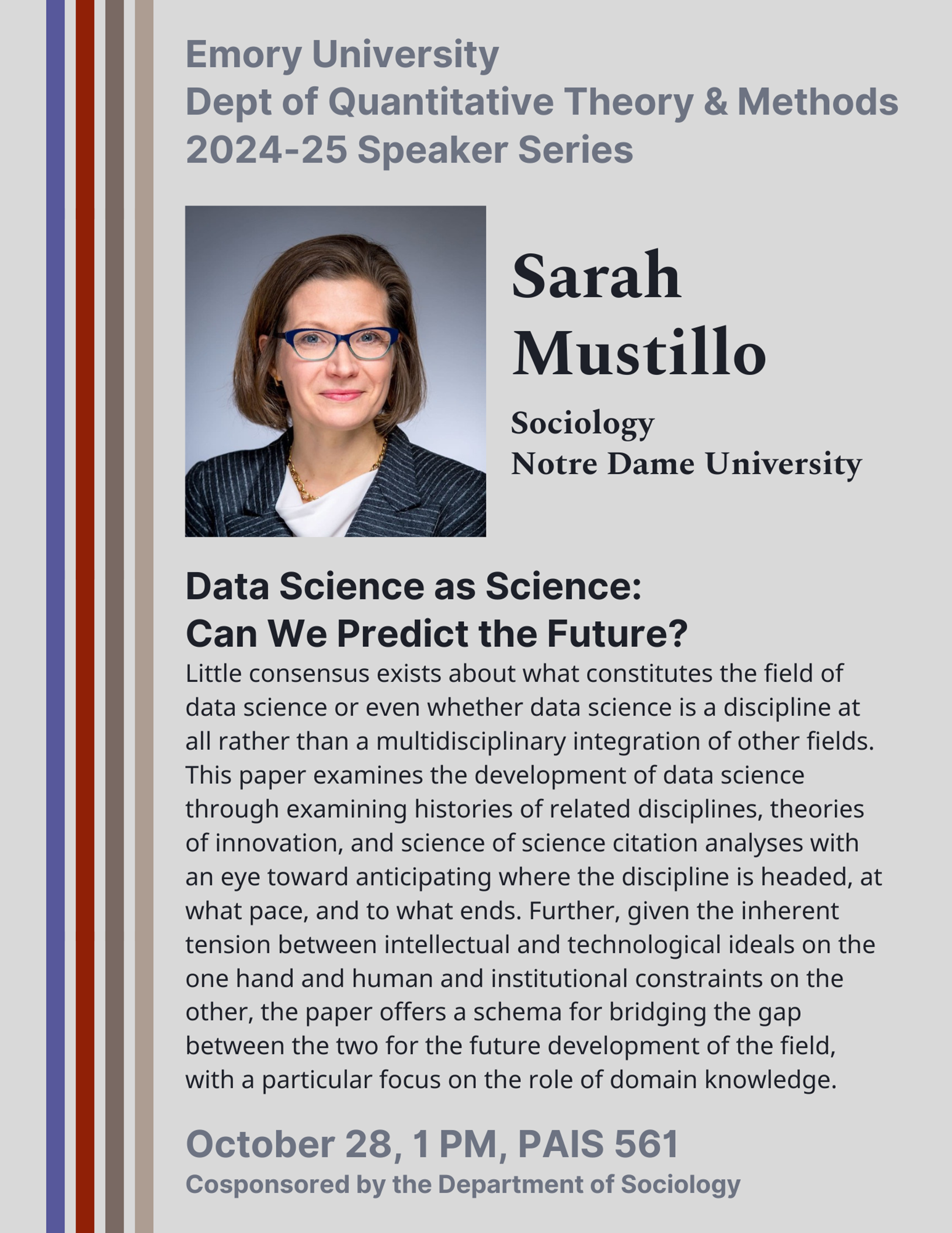 Monday, October 28th 1:00PM | PAIS 561 | Sarah Mustillo | Data Science as Science: Can We Predict the Future? |